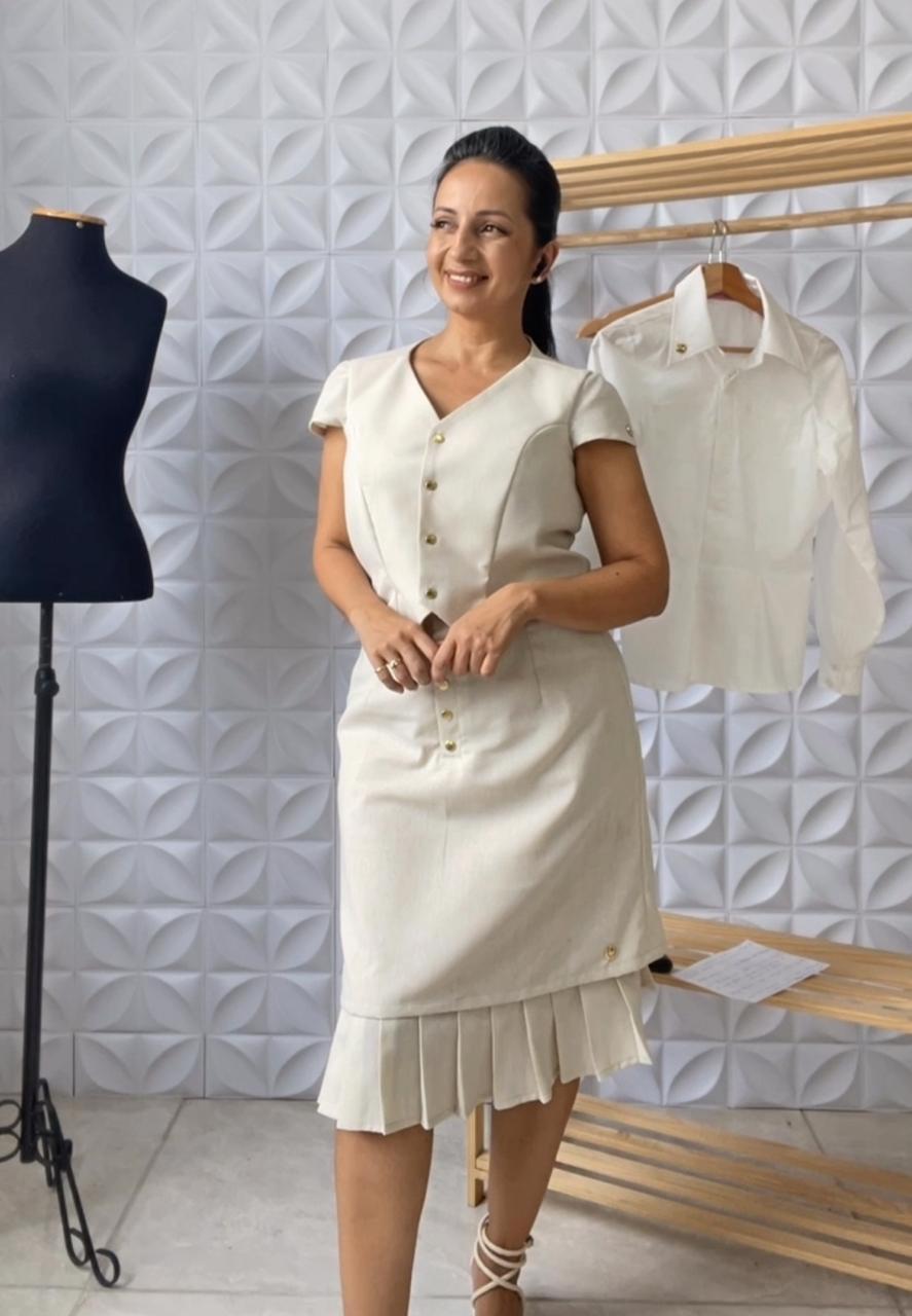 Conjunto Mara, confeccionado em linho misto e forrado com algodao.