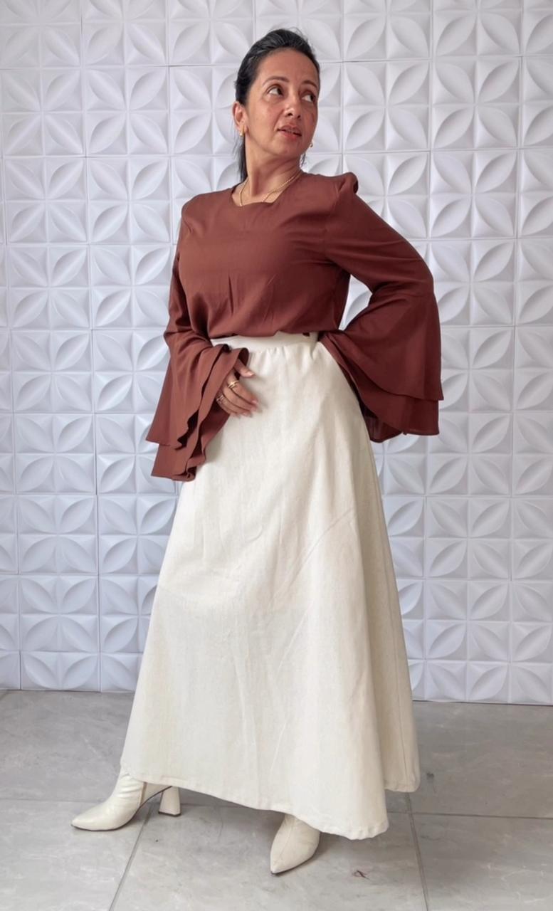 Saia Silvana é confeccionada em linho , forrada com zíper invísivel nas costas.